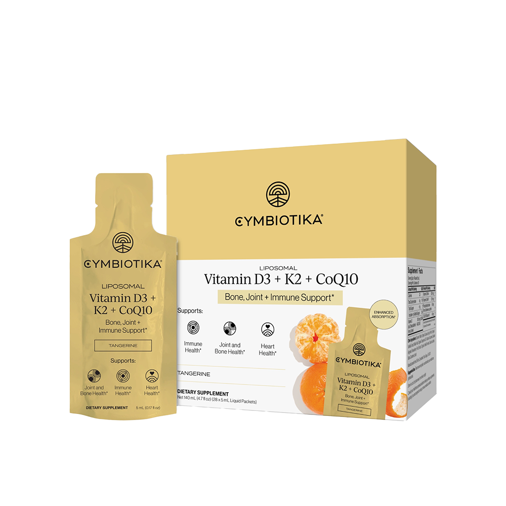 Cymbiotika’s Liposomal Vitamin D3 + K2 + CoQ10 packets utilize advanced delivery technology to support immune health, cardiovascular function, and strong bone density. This plant-based formula features D3 derived from lichen and a dual-action K2 blend (MK-4 and MK-7) to ensure calcium is properly directed to the bones rather than soft tissues. Packaged in convenient single-serve packets, the supplement is third-party tested for purity and includes CoQ10 to further promote overall heart and systemic wellness.